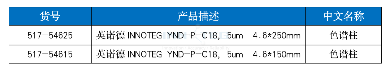 英诺德色谱柱:YND-P -C18 5um 4.6*250mm;