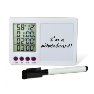 这个四通道计时器有一个内置的白板,有助于跟踪时间和其他关键信息。