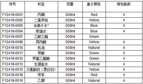 ? 半透明LDPE瓶;次氯酸钠为白色LDPE,用于230-450nm之间的光保护;甲苯为红色LDPE瓶